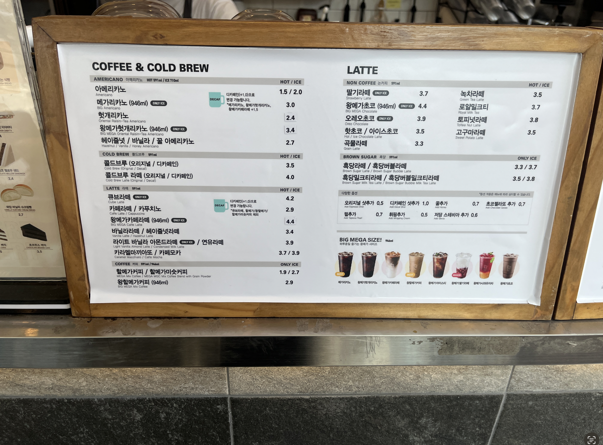 | 왕할메가 | 3,700원 | 32oz 대용량 커피, 하루 종일 마실 수 있어요 |