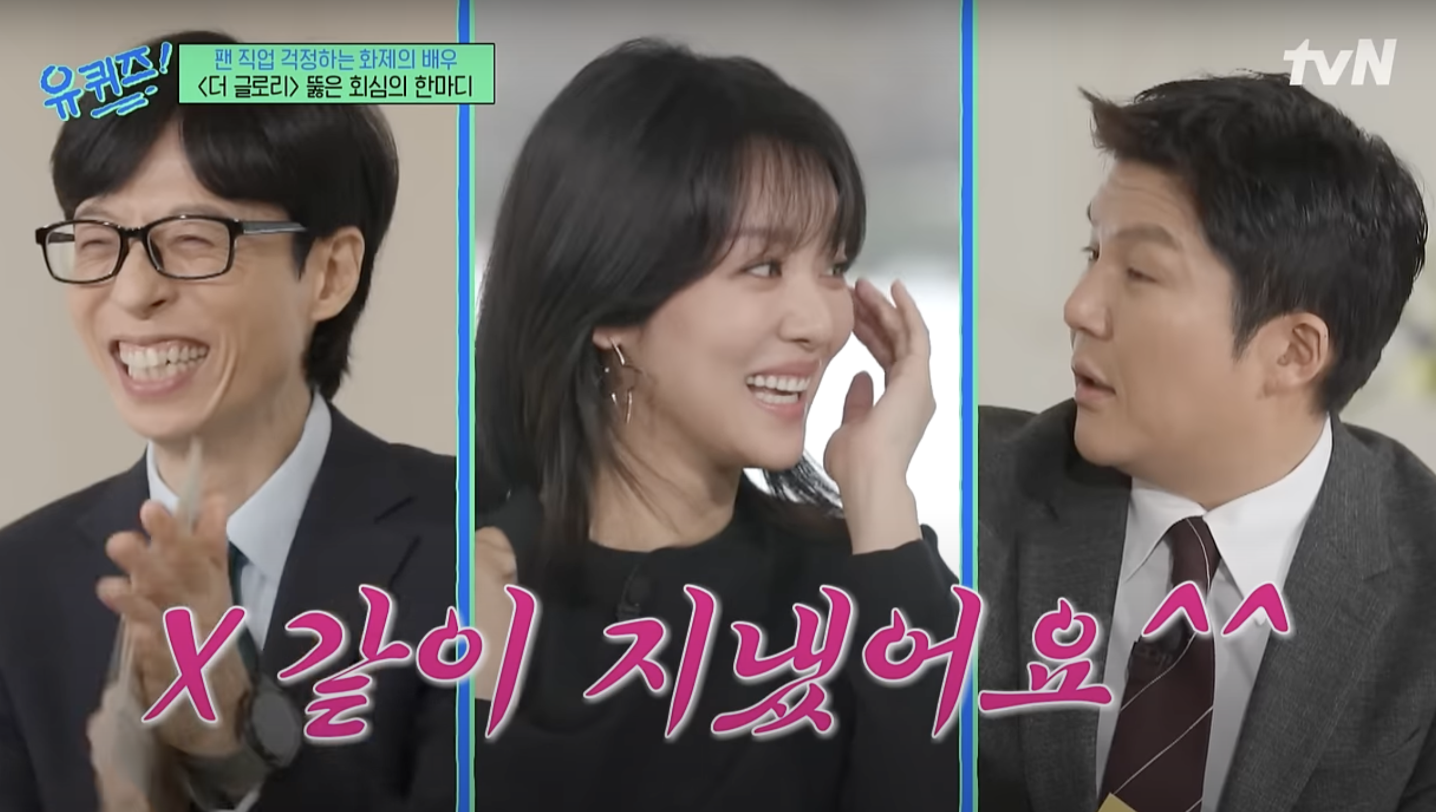 일상적인 모습에서 세 배우의 우정 모습 보기 좋습니다