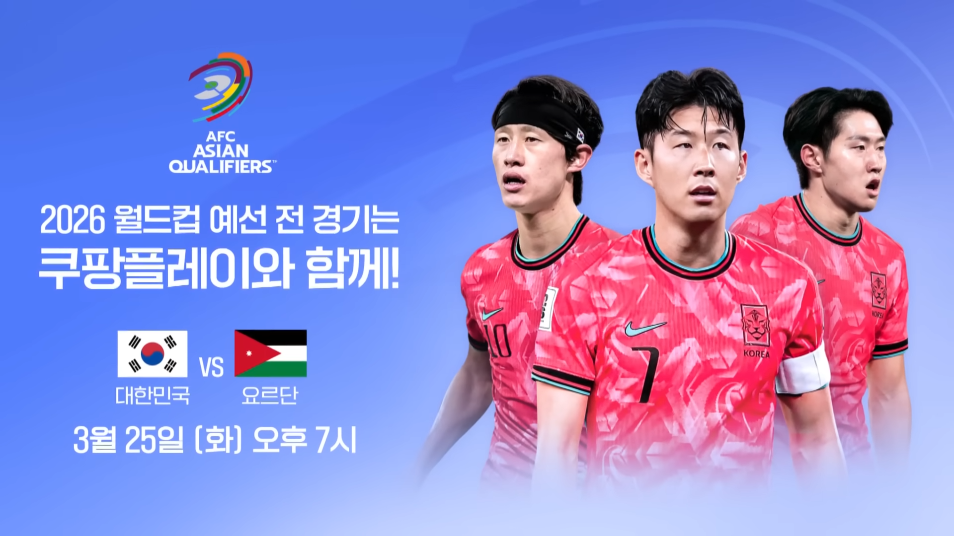 - 3월 25일(화) | 🇰🇷 한국 vs 🇯🇴 요르단 | 오후 8시 | 수원월드컵경기장
